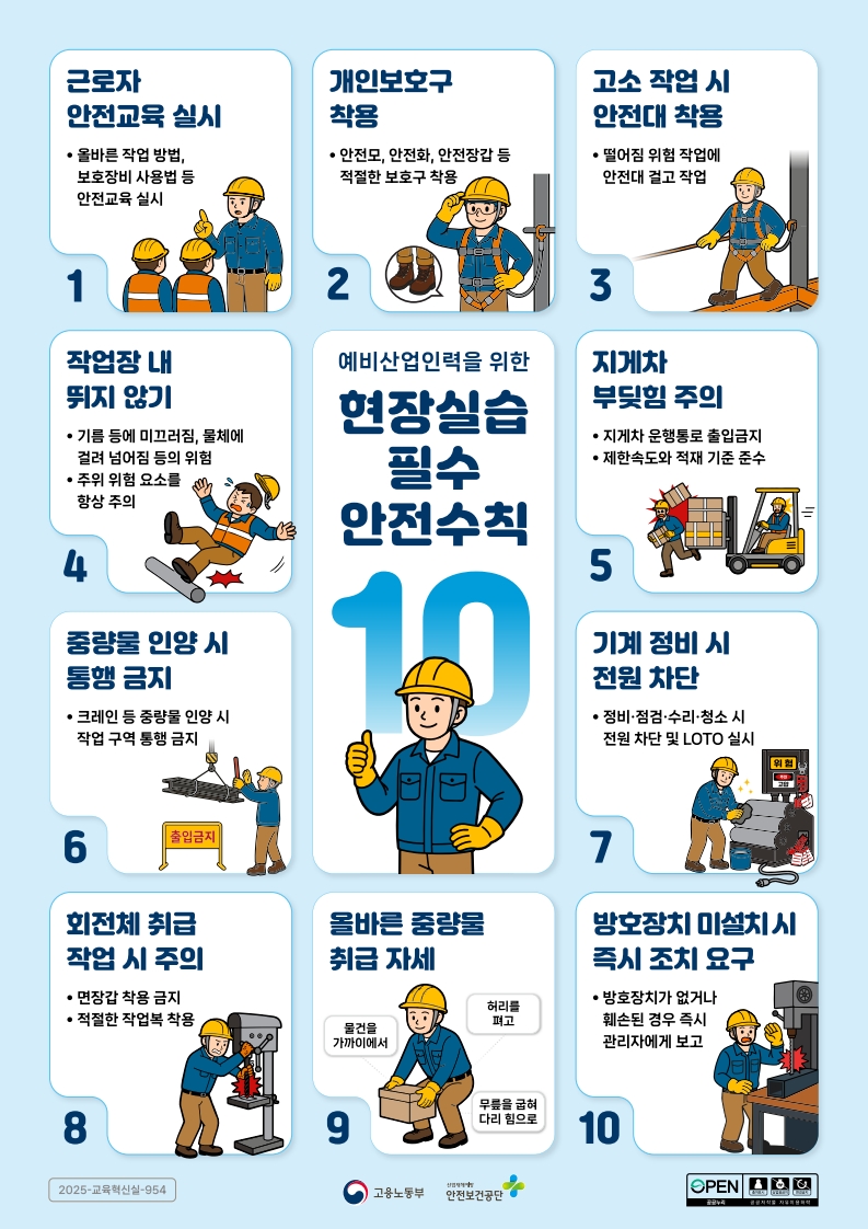 안전보건공단 산업안전포털에 [예비산업인력을 위한 현장실습 필수 안전수칙] 자료가 게시되었으니