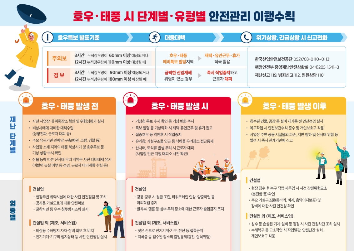[안전보건공단] 태풍·호우 시 사업장 안전관리 이행수칙 가이드